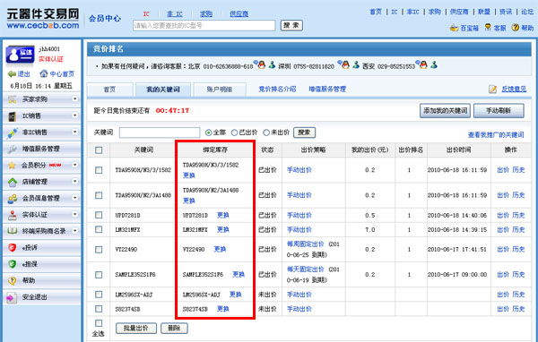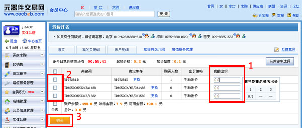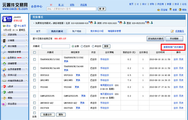 第一步:登錄會(huì)員中心,進(jìn)入會(huì)員中心-增值服務(wù)管理-競(jìng)價(jià)排名-我的關(guān)鍵詞