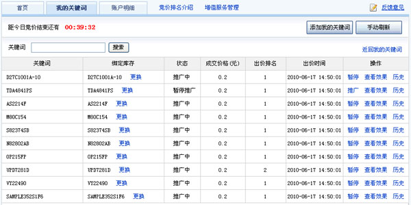 2、在我的關(guān)鍵詞頁(yè)面,可以查看我競(jìng)價(jià)的關(guān)鍵詞.